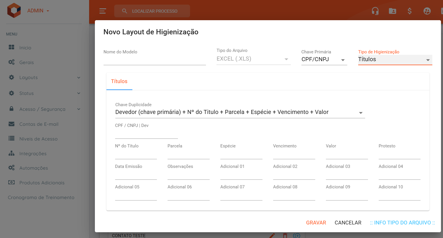 Necessário configurar o layout em Configurações → Layouts → Higienização